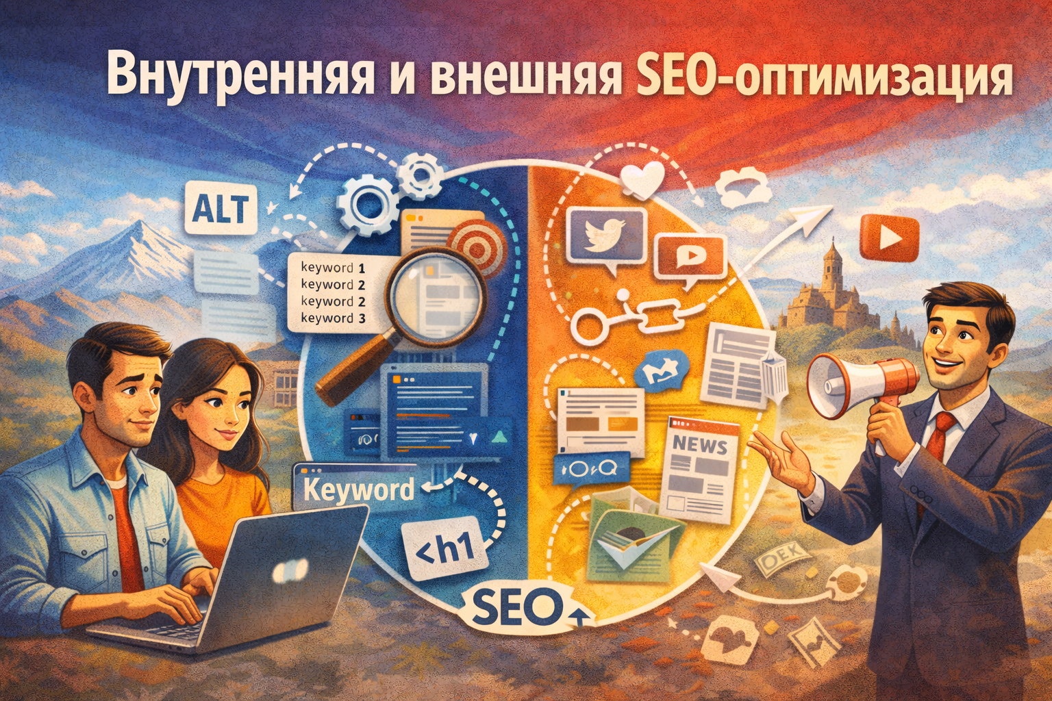 SEO-оптимизация - это не “напишем пару статей”. Это нормальная системная работа, где мы делаем две вещи: наводим порядок внутри сайта (внутренняя SEO) и усиливаем доверие к сайту снаружи (внешняя SEO). Если сделать только половину - результат обычно слабый или нестабильный.
